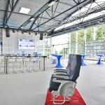 Sie betreten die Halle entweder durch den Haupteingang und das Foyer, wo sich auch Garderoben und die WCs befinden. Oder Sie »boarden« über die an der Front gelegenen Eingänge. Die Wahl treffen Sie je nach Veranstaltungsformat. Events mit bis zu 1.250 Personen sind hier möglich.