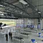 Zum Rollfeld hin lässt sich bei Bedarf das große Sektionaltor öffnen. Somit besteht ein freier Zugang zum Rollfeldbereich, der dann nur durch einen ca. 1 m hohen Zaun abgegrenzt wird.