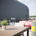 Ferner besteht eine Durchgangsmöglichkeit zur großen etwa 200 Quadratmeter großen Außenterrasse, die seitlich angelegt ist und »mitten im Grünen« liegt.